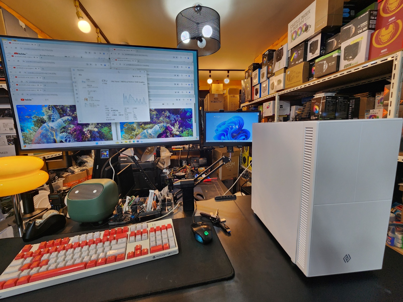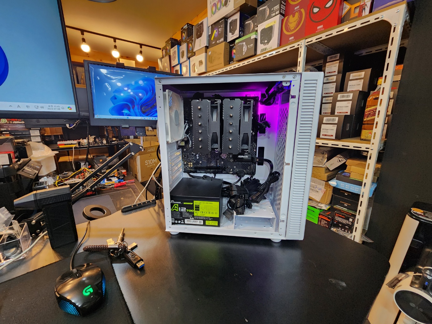 조립이 완성되면 듀얼모니터 테스트와