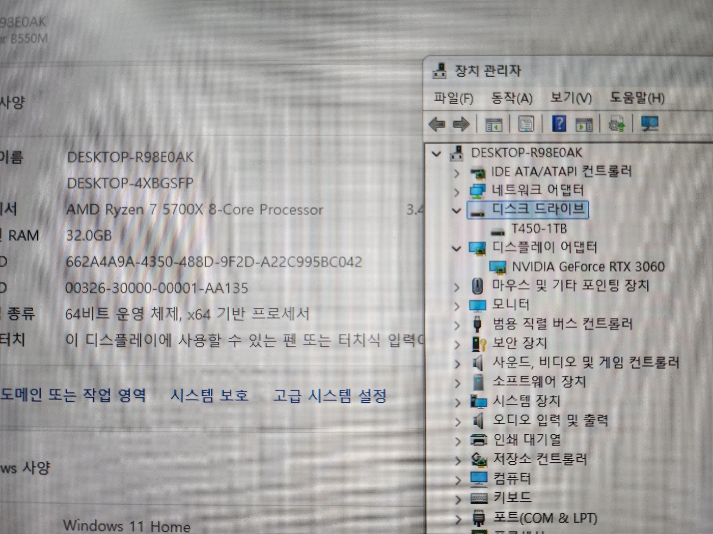 라이젠7 5700X, 32G, RTX3060 흰둥이에디션